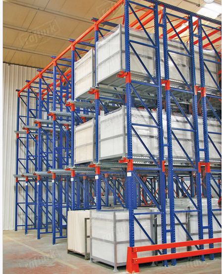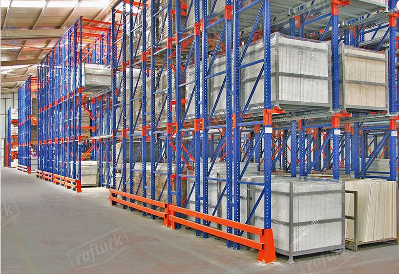 “Drive-In Raf Sistemi” dediğimiz içine girilebilir raf sistemi, var olan depo alanının ve hacminin maksimum verimde kullanımını sağlayan, oldukça kullanışlı raf sistemlerinden biridir. Birbirine eş, aynı tip çok sayıda paletli ürünün stoklanması için verimli alan kullanımıyla büyük avantaj sağlamaktadır. Bu yüzden ideal raf sistemlerinden biri de içine girilebilir raf sistemidir. Drive-In raf sisteminin en büyük avantajı, var olan alanı %85’e kadar daha yüksek verimde kullanılabilir hale getirmesidir. Alan kullanımını maksimize ederken, raf aralarındaki koridorları da minimize etmektedir. Aynı zamanda ürünlerin giriş ve çıkışları kolaylıkla denetlenebilmektedir. Yükleme kanalları ise birbirden farklı ürünlerin depolanmasına olanak sağlamaktadır. Bu tip raf sistemlerinde raf kanallarına tek taraftan giriş çıkış yapılabilmekte; fakat istenildiği takdirde raf kanallarına çift yönden de giriş çıkış sağlanan uygulama eklenebilmektedir. Her iki yönden de giriş çıkış yapılabilen bu raf sistemine “drive through (içinden geçişli)” raf sistemi denilmektedir. Drive-In raf sistemine böyle bir ilave uygulama yapılması çok büyük avantajdır. Kontrol edilebilir sıcaklık altında depolanması gereken ürünlerin olduğu durumlarda da içine girilebilir (drive-in) raf sistemleri -tıpkı dondurma depoları ve frigorifik depolar gibi- kullanılabilmektedir ve büyük kolaylık sağlamaktadır.