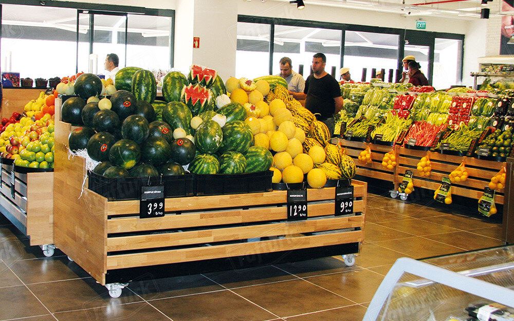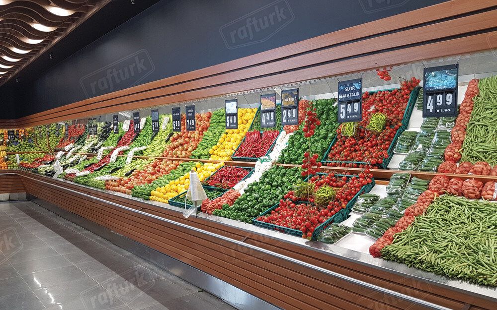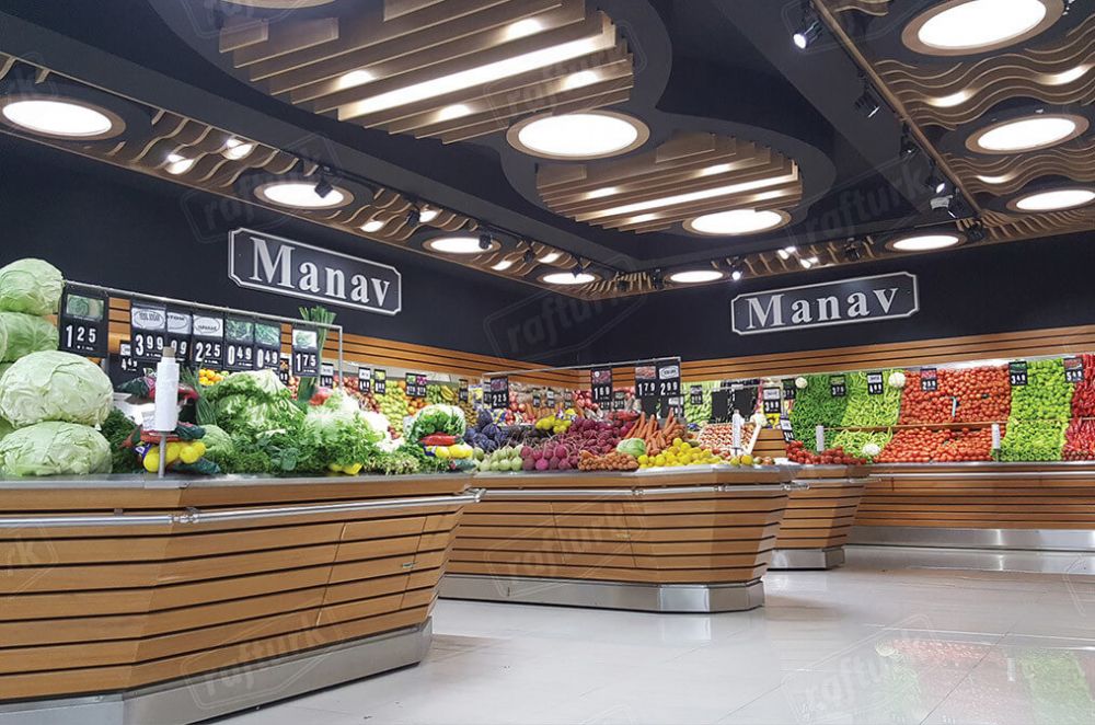 Manav reyonları, meyve ve sebzelerin düzenli şekilde teşhir edilmesini sağlar. Müşterilerin kolayca seçim yapabilmesi için kullanım kolaylığı sağlayan manav tezgahları ile ürünlerinizin sunumunu çok daha şık ve modern bir hale getirebilirsiniz. Manav reyonları için manav tezgahlarında kullanılacak en iyi malzemelerin başında mdf, mdflam, sunta, suntalam, demir, çelik, alüminyum, plastik, pleksi ve mika gelmektedir. Delikli olarak tasarlanmış manav tezgahları ürünlerinizin üzerindeki suyun akmasını sağlayarak meyve ve sebzelerin uzun süre bozulmadan kalmasına olanak verir. Marketlerin manav reyonları için önem verdiği temizlik unsurunu da dikkate alarak manav reyonlarımızın tamamını kolay yıkanabilecek şekilde tasarlıyoruz. Modüler manav reyonları ile üst tarafta ürün teşhiri alt taraftaki kapaklı alanda ise ürün stoklama yapabilirsiniz. Bu sayede manav bölümünde mekandan en verimli şekilde yararlanabilirsiniz. Marketinizin manav bölümünün şekline göre bir manav reyonu sunabiliriz. Manavınız köşeli bir alandaysa köşe tipi reyonlar ile çözüm sağlanabilir. Bu alanda kolon bulunuyorsa kolonu reyon olarak kaplayabilir veya kolon dibine manav reyonu kurulabilir. Orta alandan faydalanmak isteyen market sahipleri için orta manav reyonları ideal bir seçenektir. Bu alanda ihtiyacınıza göre hareketli (seyyar) manav reyonlarını da tercih edebilirsiniz. Reyonların altında bulunan tekerlekli yapı sayesinde manav reyonlarınızı dilediğiniz gibi değiştirme imkanı doğar. Marketler için diğer raf ve ekipman çözümlerimize market rafları sayfamızdan ulaşabilirsiniz.