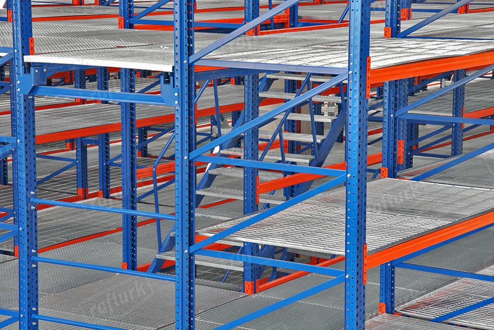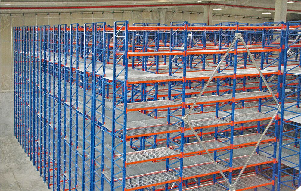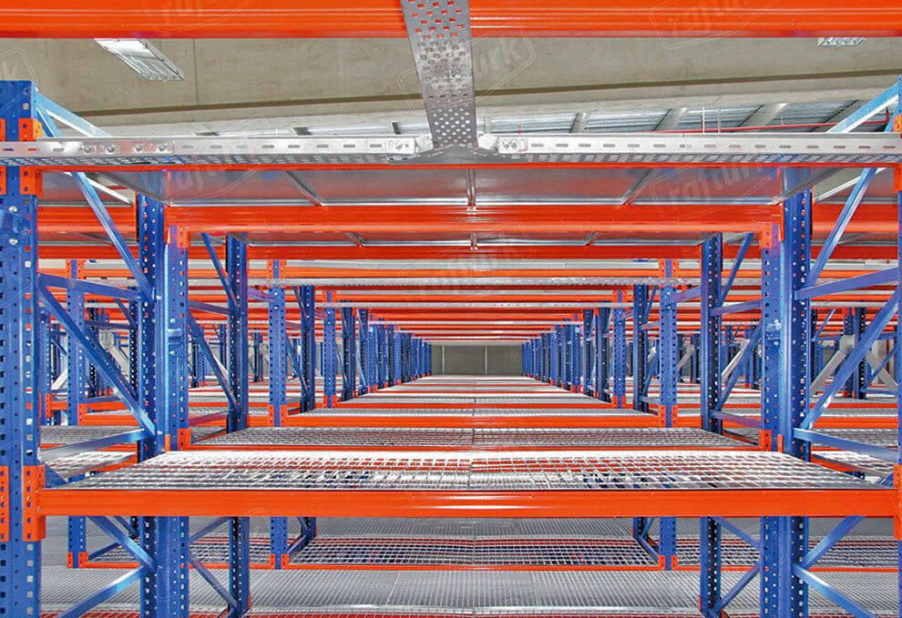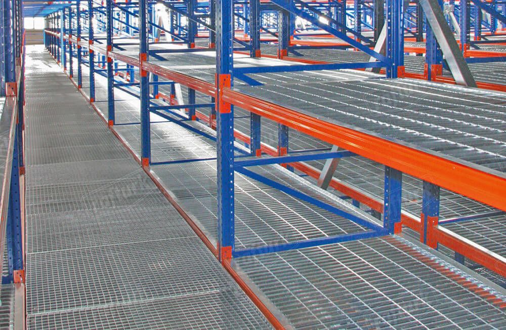 Depolama ve aynı anda çalışmak için üretilen çözümlerden biri de “Mezanin Raf Sistemi”dir. Bu sistemler çok katlı olarak kullanıldığı zaman aynı alan üzerinde ilave bir depolama veya çalışma alanı kazanılır. Mezanin raf sistemi sayesinde depolama alanı yüksekliğinden maksimum verim sağlanabilir. Soğuk veya sıcak haddelenmiş profillerden üretilen bu sistemler sorunsuzca monte edilir. Farklı yükler için özel isteklere göre mezaninler, yanlamasına veya uzunlamasına isteğe bağlı olarak genişletilebilir. Her katta en yüksek seviyede emniyet tabidir. Katlar üzeri kaplama olarak tel, ızgara, sunta, MDF, sac, tava ve benzeri kaymayı engelleyecek materyaller kullanılmaktadır. Suntaların altı beyaz veya doğal olarak kaplıdır.